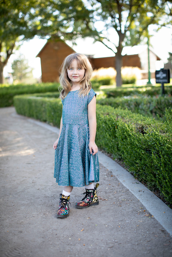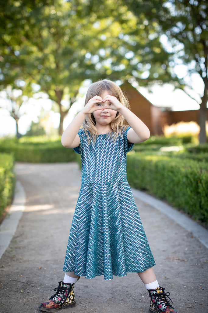 Adorable high waist Twirl Dress made with knit and Liverpool fabric for stretch. Perfect and versatile for everyday play or Sunday best. This dress is made with textile sensitivity in mind...
